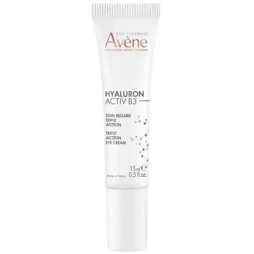 Avec l’âge tout s’accélère. Les cellules vieillissantes se propagent et la peau fonctionne au ralenti. Les laboratoires dermatologiques Avène créent le soin regard Hyaluron Activ B3 contenant du sulfate de dextran, de l’acide hyaluronique pur (haut poids moléculaire et taille intermédiaire) et du niacinamide (6%) pour agir sur la cause du vieillissement et prolonger la vie des cellules*. Le soin regard triple correction Hyaluron Activ B3 est un soin éco-conçu contenant 93% d’ingrédients d’origine naturelle, sans ingrédients d’origine animale. Sa texture gel-crème apporte un effet frais immédiat. Le contour de l’œil est plus ferme. Les rides, poches, cernes sont comblées. Sans parfum, ce soin convient au contour des yeux mêmes sensibles ainsi qu’au contour des lèvres. Il s’agit également une bonne base de maquillage.
