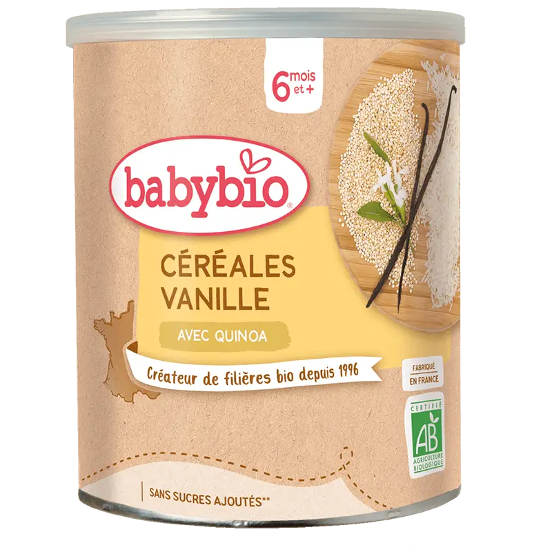 Eveiller bébé à de nouvelles textures, c’est le rôle du quinoa : ancienne graine très populaire en Amérique du Sud ! Avec son léger goût de noisette, elle est très appréciée des tout-petits. Cultivé dans le respect de l’Agriculture Biologique, le quinoa se marie à merveille avec la douceur de la vanille.