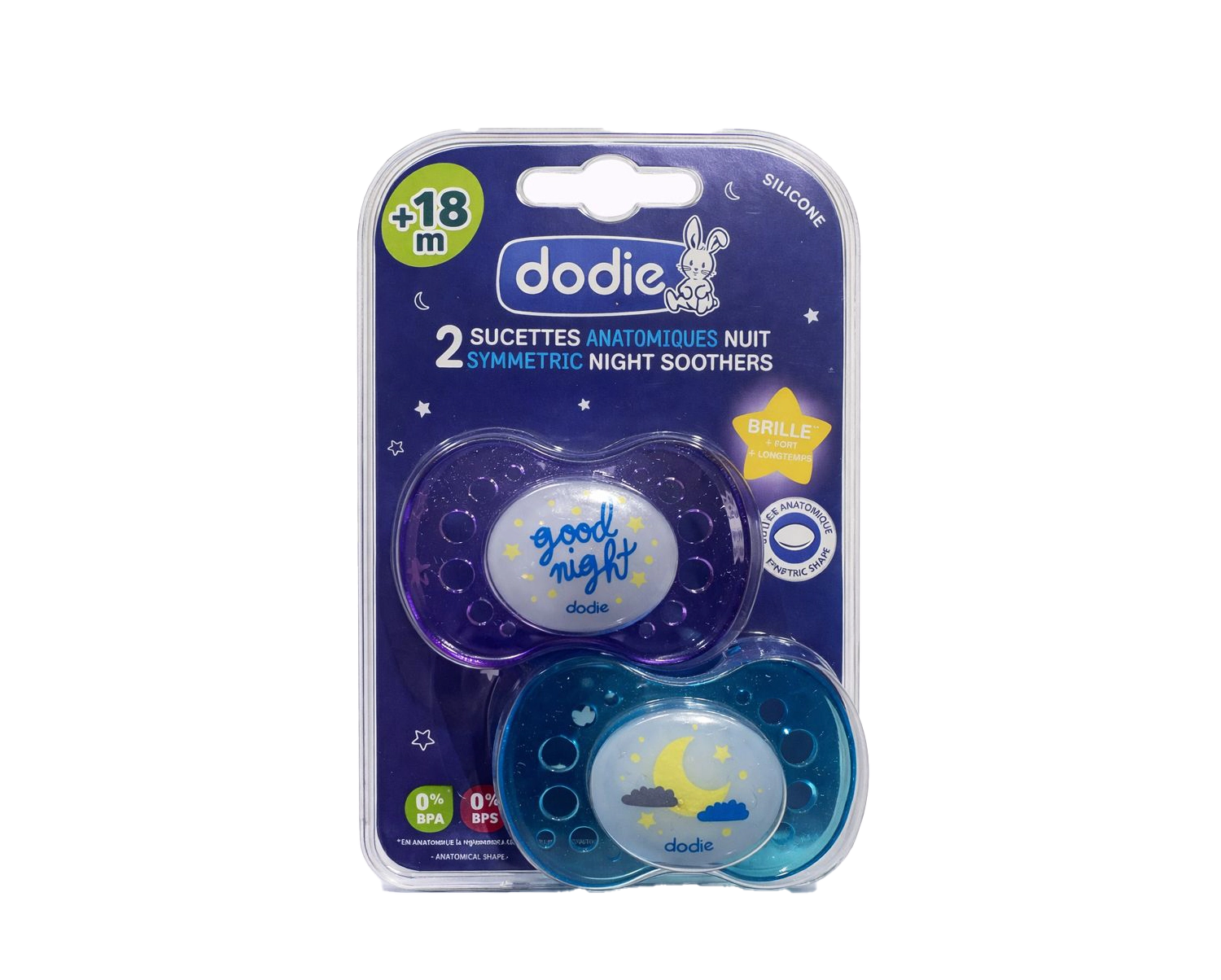 Dodie – Lot de 2 Sucettes Anatomiques Nuit +18 Mois Sans BPA