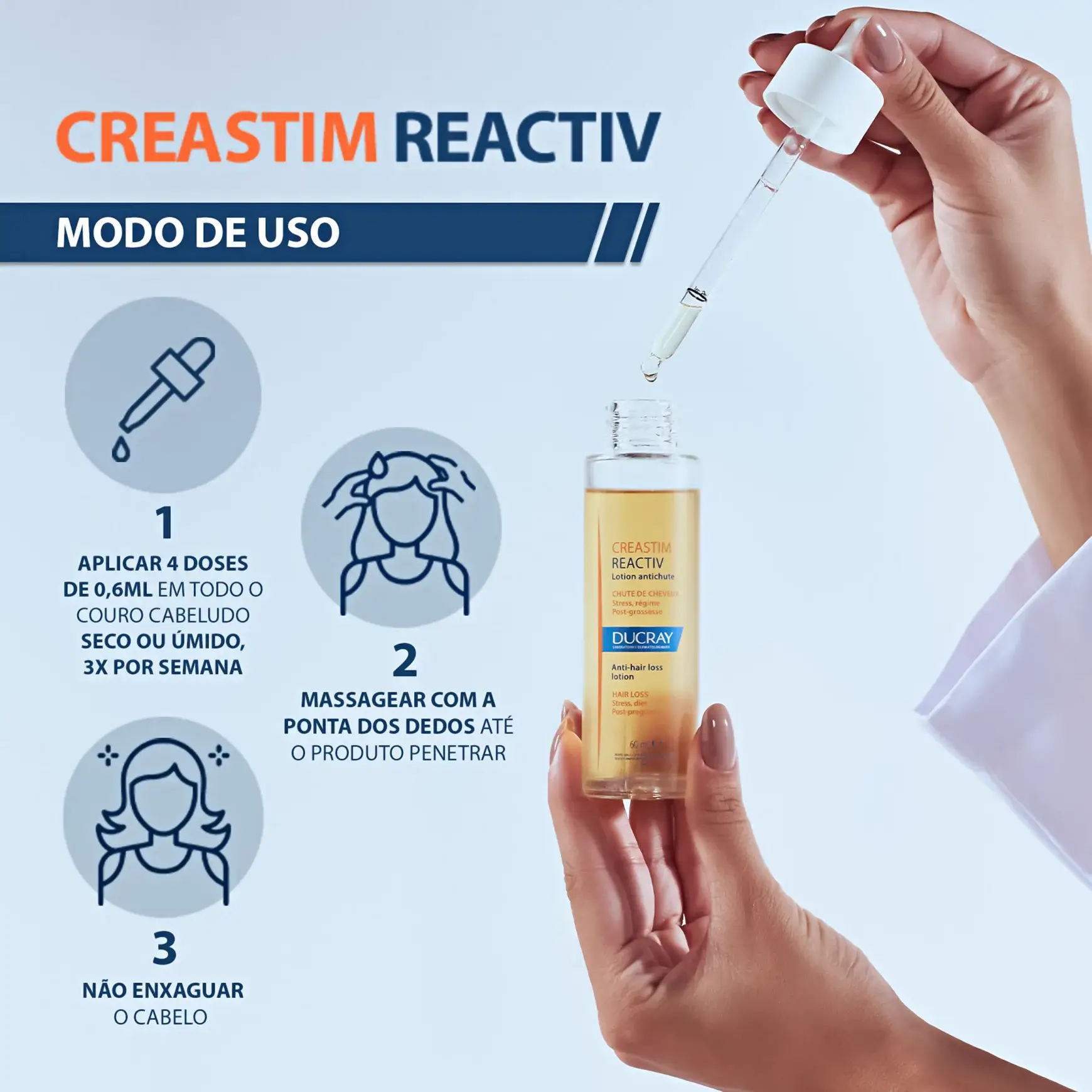 La lotion antichute CREASTIM est un soin capillaire recommandé en cas d’une chute de cheveux réactionnelle survenue à la suite d’une grossesse, d’un stress important ou liée à la fatigue ou au changement de saison.