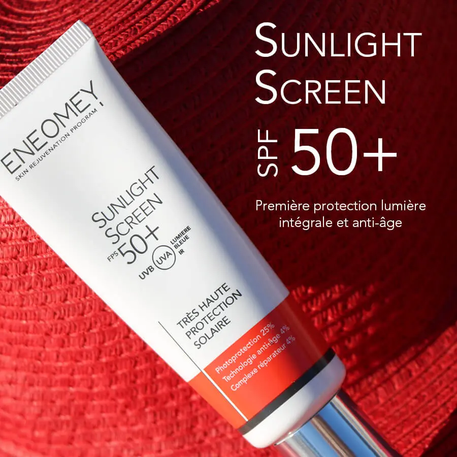 Véritable innovation, SUNLIGHT SCREEN 50+ protège de l’irradiation causée par les UVA et UVB, mais aussi par les Infrarouges et la Lumière bleue.