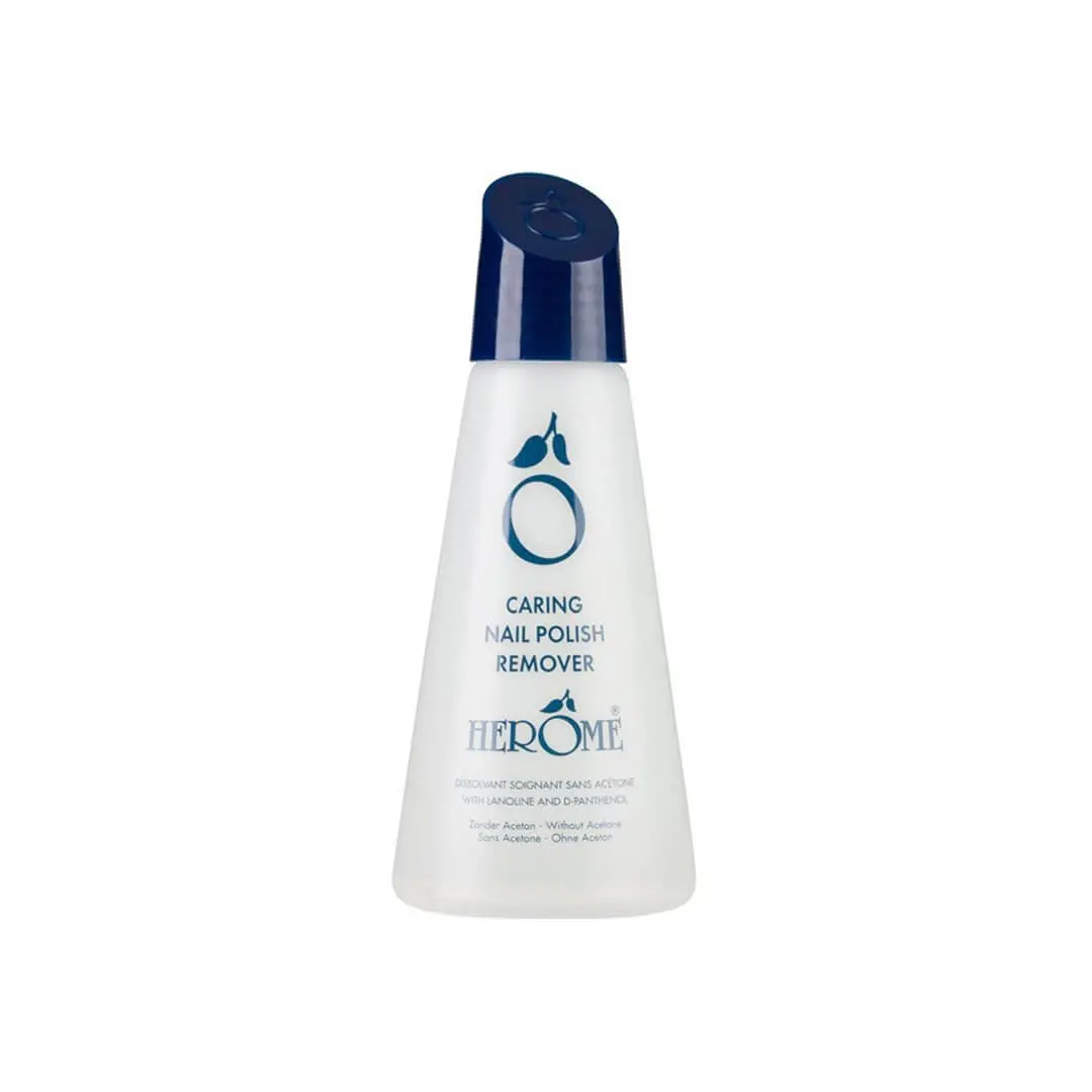 Herôme Dissolvant Soignant est un dissolvant sans acétone, ni huile : après avoir retiré le vernis, vous pouvez directement remettre du durcisseur ou du vernis.