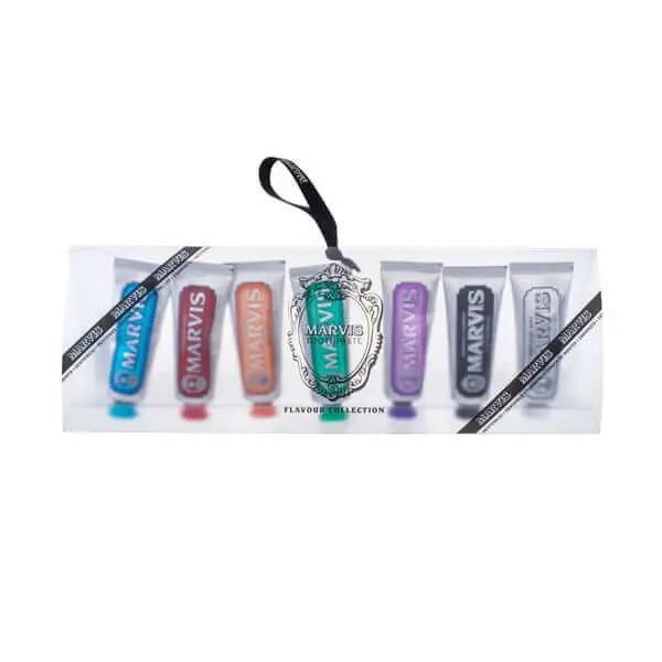 Partez pour un voyage plein de saveurs et de parfums originaux et essayez le set de dentifrice Marvis. Le forfait comprend jusqu’à 7 versions du dentifrice emblématique Marvis, sélectionnées pour que chacun puisse prendre soin de ses dents, même lors d’un long voyage.