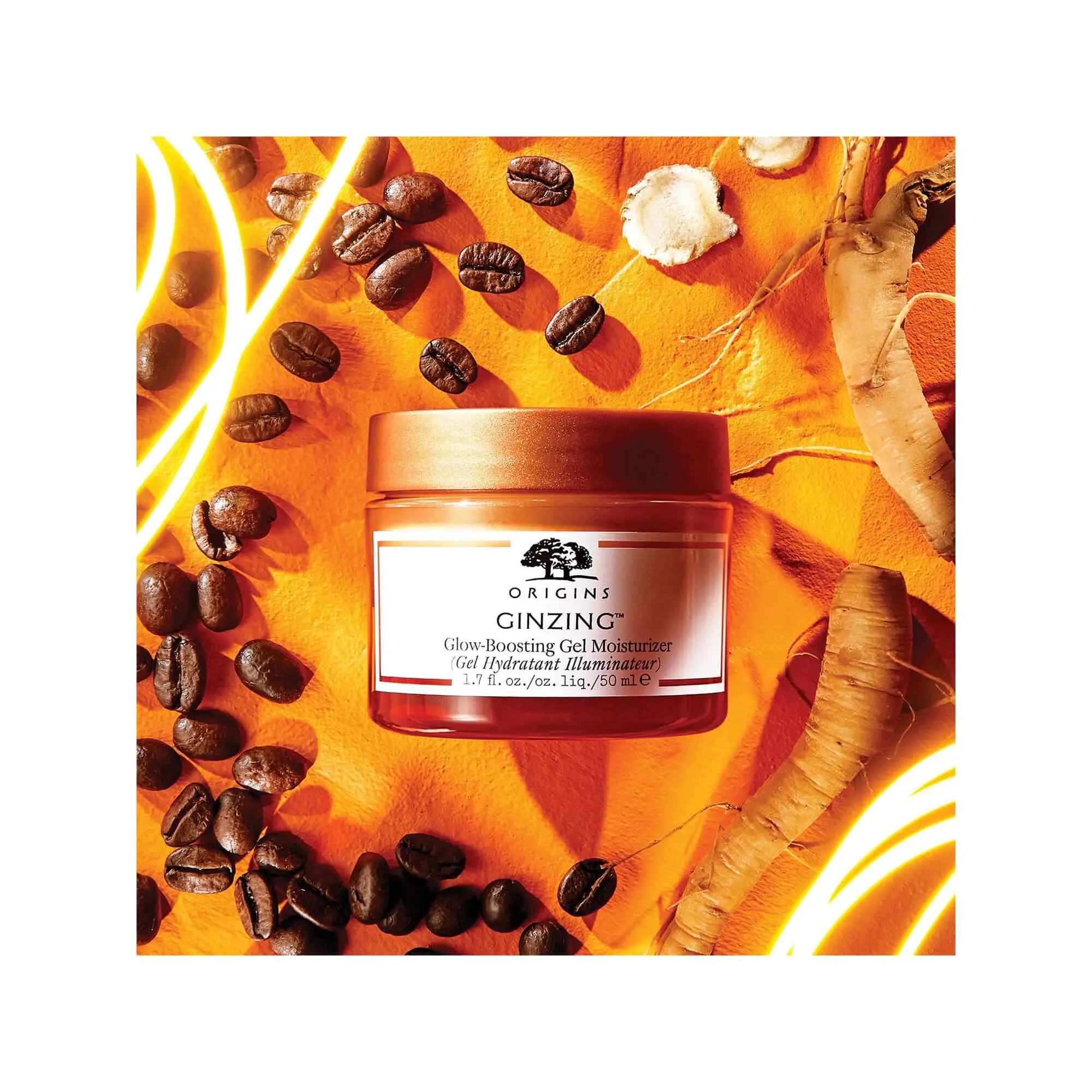 Le gel hydratant GinZingTM Glow-Boosting est un hydratant léger qui illumine le teint et laisse un éclat agréable. Il est enrichit en Ingrédients énergissants tells que le Ginseng Panax et les Grains de Café.