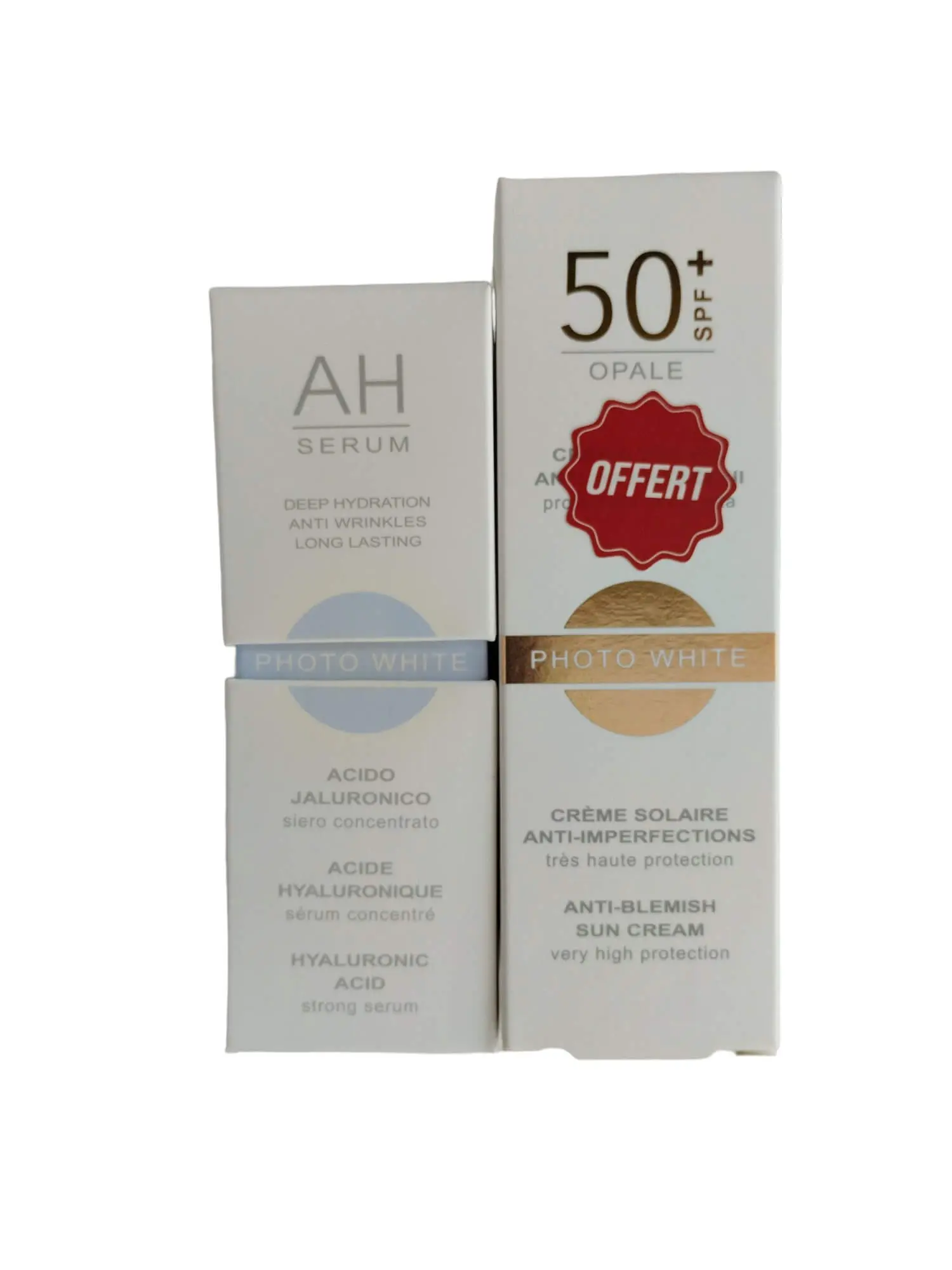 PHOTO WHITE SERUM ACIDE HYALIRONIC+ CRÈME SOLAIRE ANTI IMPERFECTIONS OFFERT
