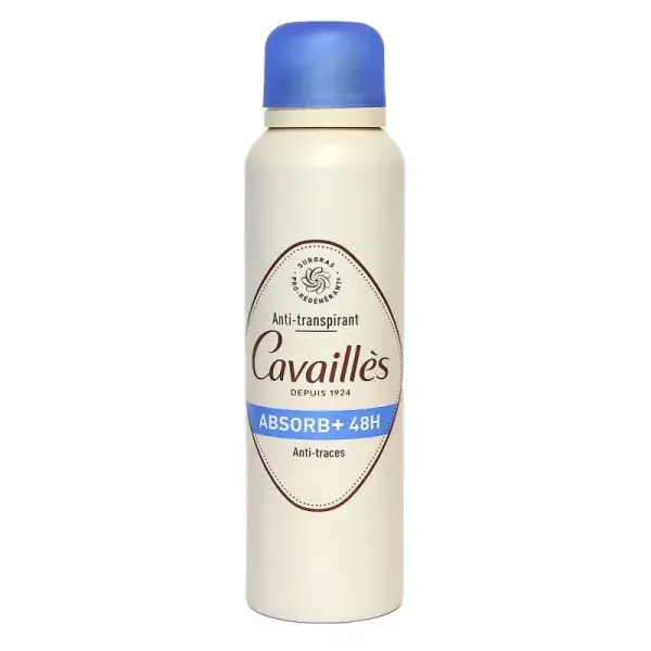 Anti-transpirant Absorb+ 48h Spray de Rogé Cavaillès , surgras végétal et actifs absorbants qui agissent durablement contre les photos de transpiration et neutralisent les mauvaises odeurs.