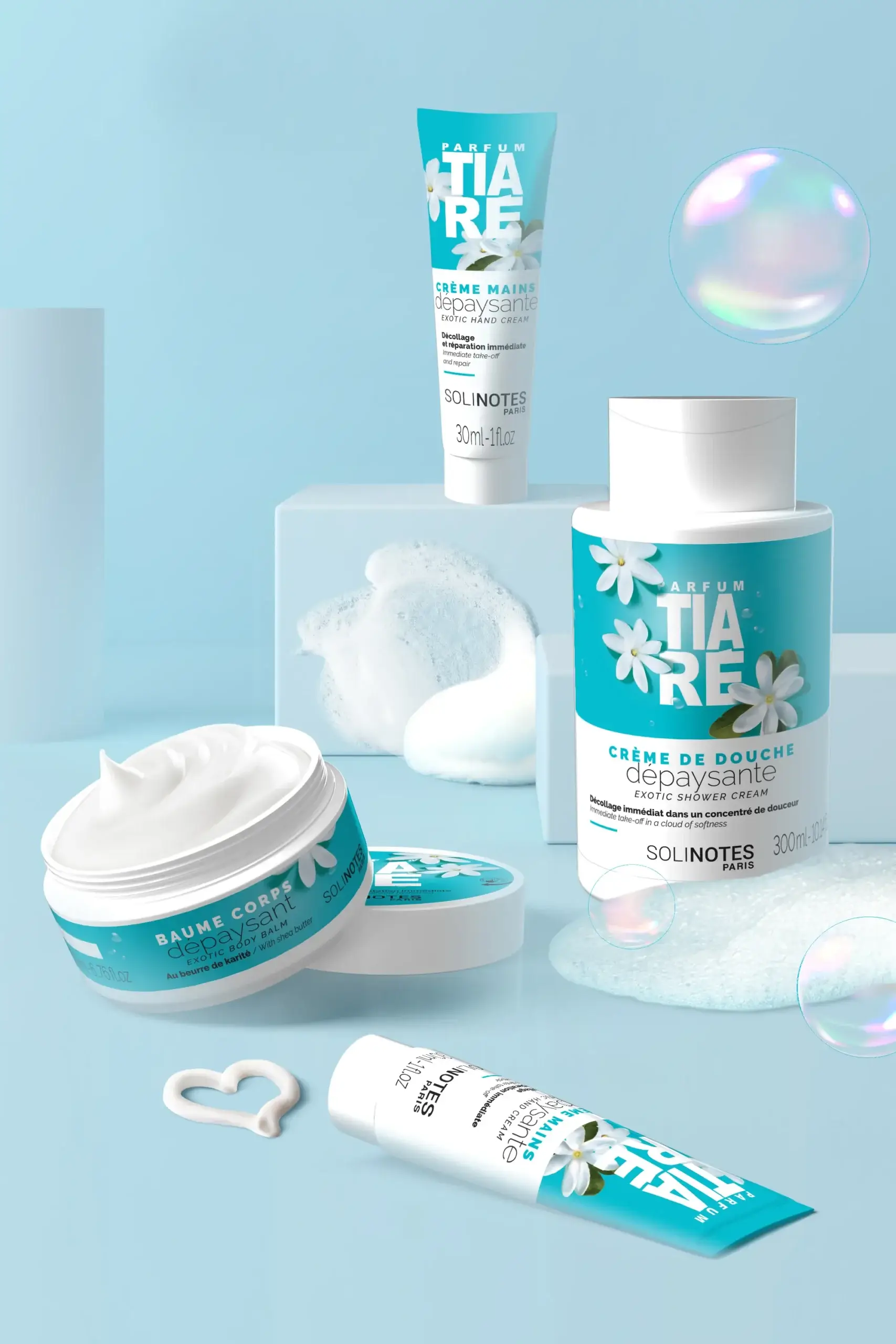Crème de douche Solinotes Tiaré : décollage immédiat avec le Tiaré, un parfum suave aux accents de paradis.