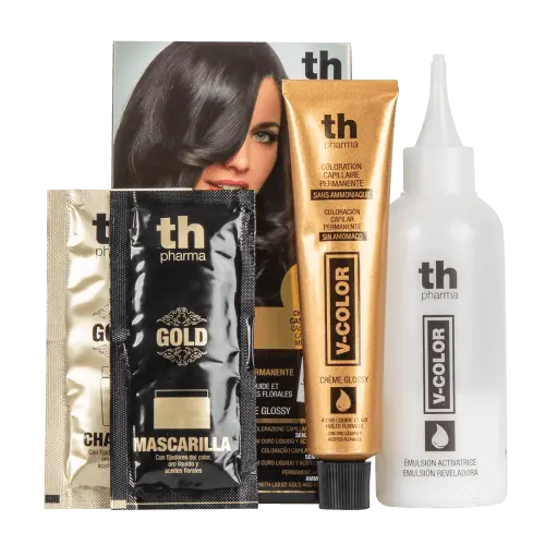 Dans la mallette Th pharma teinte negro 1, vous trouverez : Un tube de coloration permanente sans ammoniaque Vitaliacolor, un flacon d’émulsion révélatrice avec applicateur, une paire de gants de haute qualité, un sachet Vitalia Gold Shampoo et un sachet Vitalia Gold Masque facial .