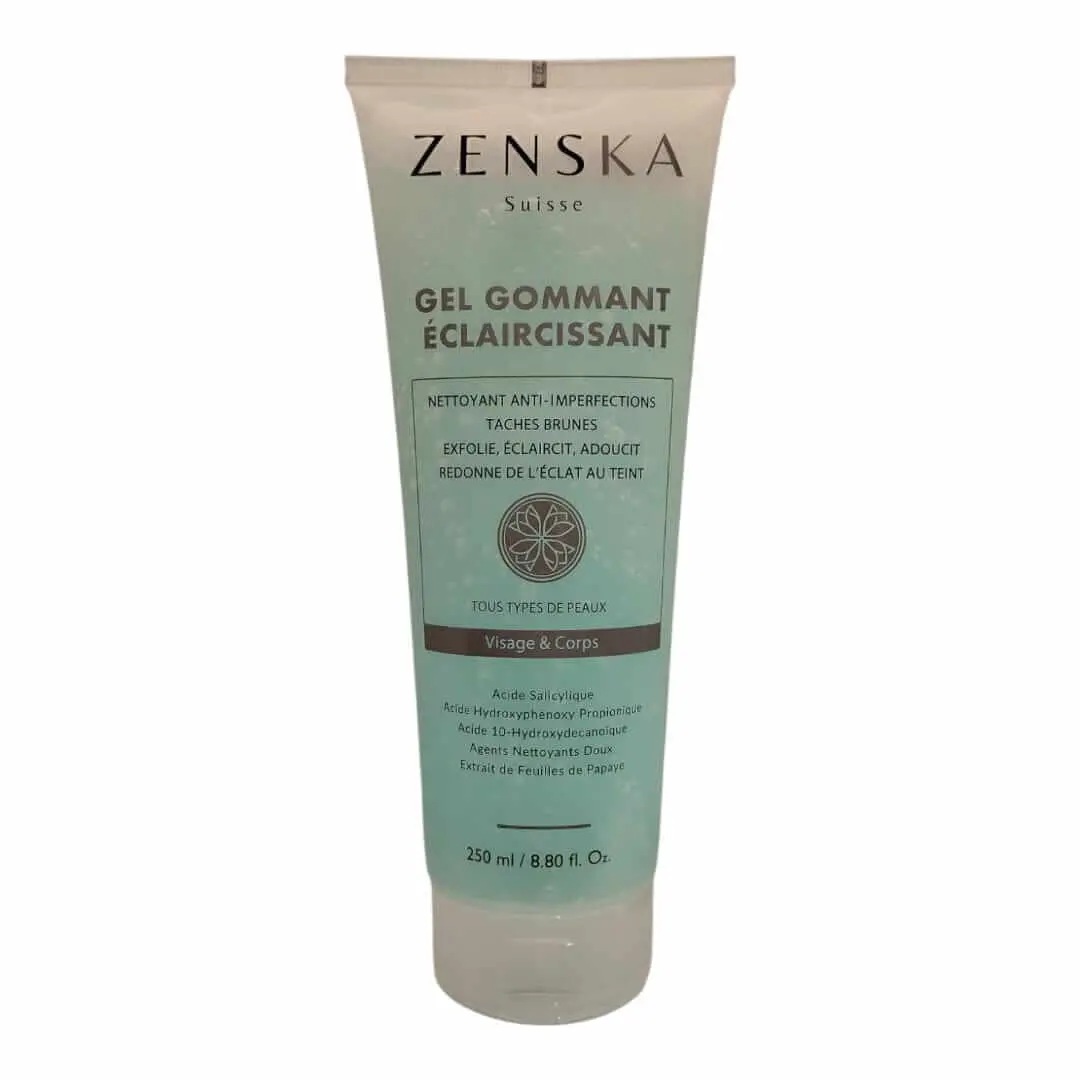 Découvrez l’éclat de votre peau avec le ZENSKA Gel Gommant Éclaircissant 250 ml. Ce gel innovant associe des propriétés exfoliantes et éclaircissantes pour offrir un soin complet et performant.